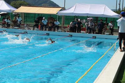新見市学童水泳記録会入賞者の表彰と