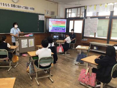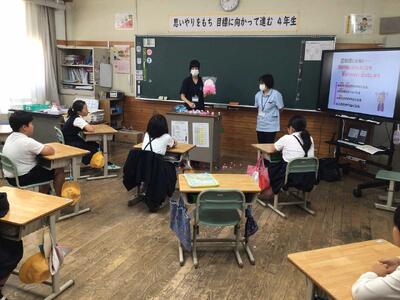 ☆4年生が[認知症サポーター養成講座」を受講しました!☆ 投稿: 校長 (15:51) 10月17日(金) 樽介護士と阿部保健師をお招きし、4年生が「認知症サポーター養成講座」を受講しました。お二人から、まず、認知症の症状や特徴について教わり、こういう場合はこういうことに気をつけ、こういうサポートをしてあげるとよいという、気をつけるポイントや具体的なサポートの仕方について学びました。4年生は優しい子ばかりなので、きっとよいサポーターになれると思います。 Tweet -