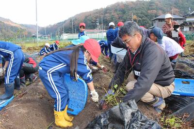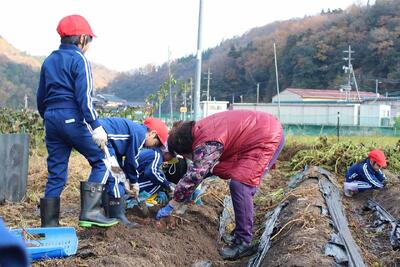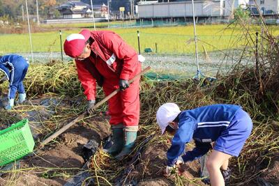 ボランティアの方々にお手伝いいただきながら、みんなで一生懸命いもをほりました。