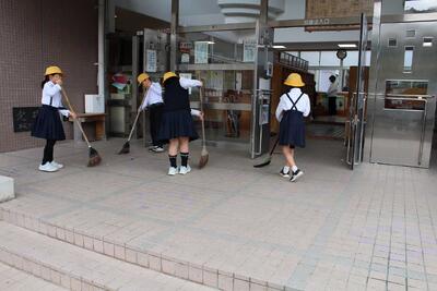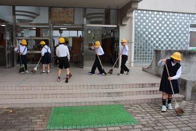 自主的にほうきを持ってきて掃きました。「2年生、すごい!」と感心・感動しました。